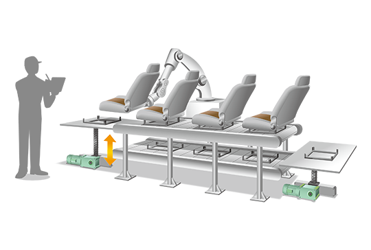 The upper conveyor transports the jig holding the transported item, and the lower conveyor transports the empty jig. Zip Chain Actuator is used on this circulating conveyor, which achieves a low-floor lifting mechanism.