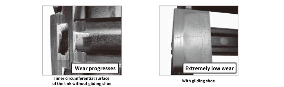 Comparison of wear conditions of Gliding arrangement specification and sliding shoe series