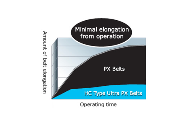 - Operating elongation is extremely small compared to conventional PX Belt