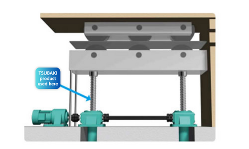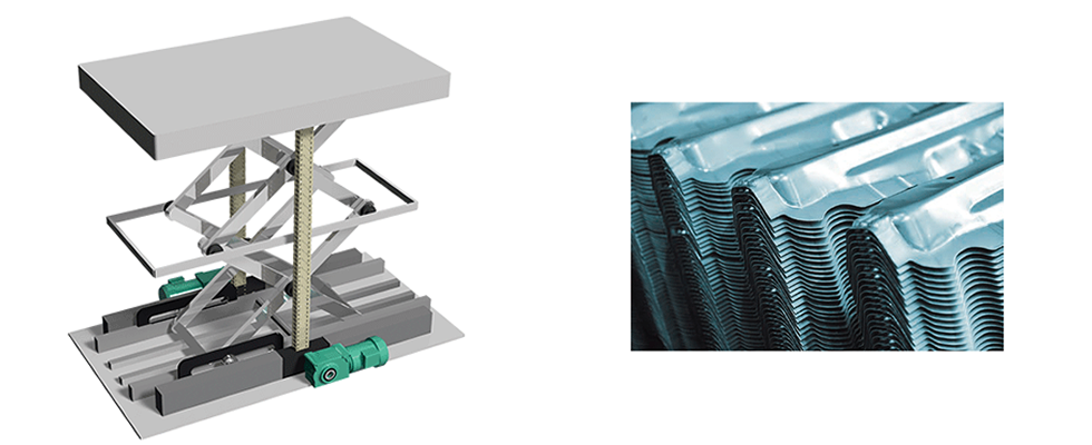Zip Chain Lifters are used to raise and lower stacked steel materials for pressing, and pressed components. Zip Chain Lifters are capable of higher speeds of raising and lowering than hydraulic lifters, and their positioning accuracy is also high, contributing to improved productivity.
