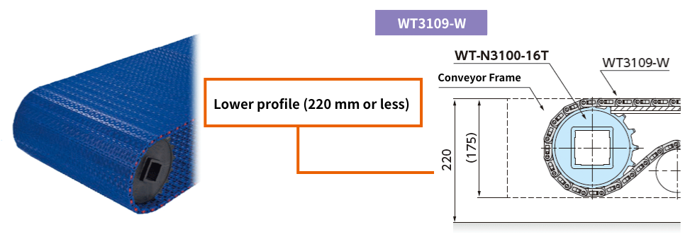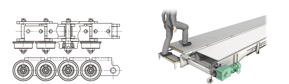 This is a chain for horizontal transport, and the return section can also be used effectively.