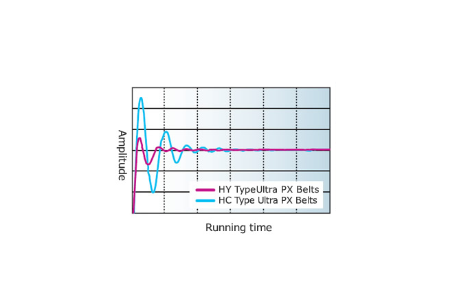 Ultra PX Belt HY Type is a belt that has achieved significantly higher strength and rigidity through the use of a hybrid core wire made of glass and carbon. It has achieved a transmission capacity improvement of approximately 1.3 to 2.0 times that of the conventional HC Type. This also allows for downsizing of equipment and makes it more compact.
