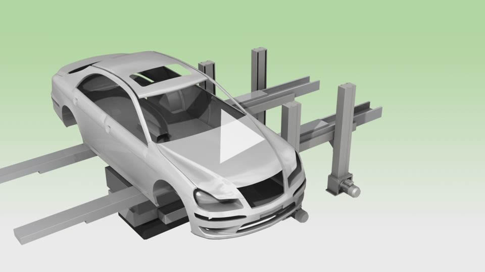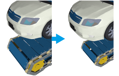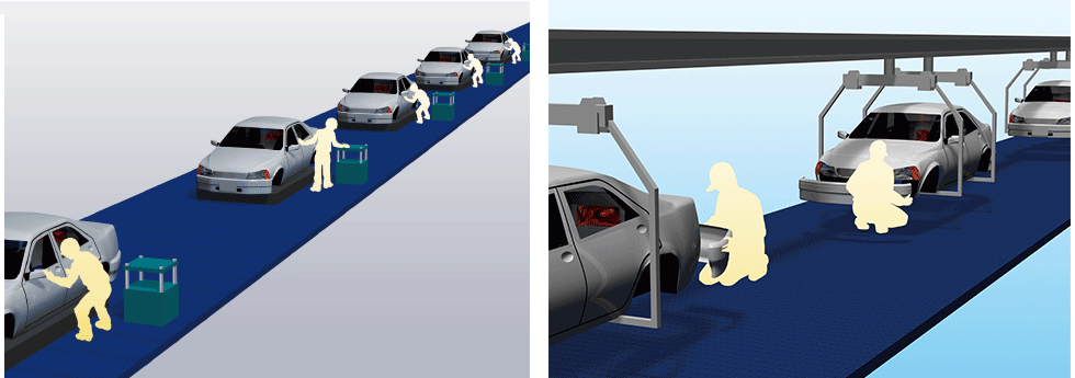 Lifting the vehicle body with two Lift Master on the left and right ensures workability. It also minimizes the need for equipment changes when changing the production vehicle body.