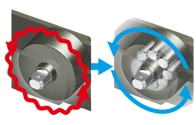 Bearings are built into outboard roller to increase the roller's allowable load, reduce the coefficient of friction, and suppress stick-slip phenomenon of the conveyor.