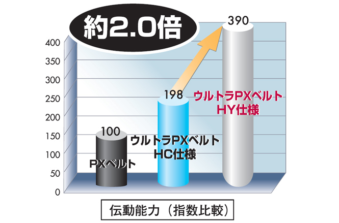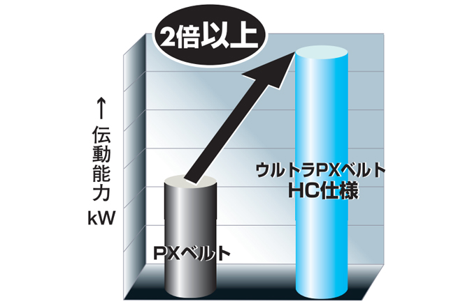 - Transmission capacity is more than twice that of conventional PX Belt