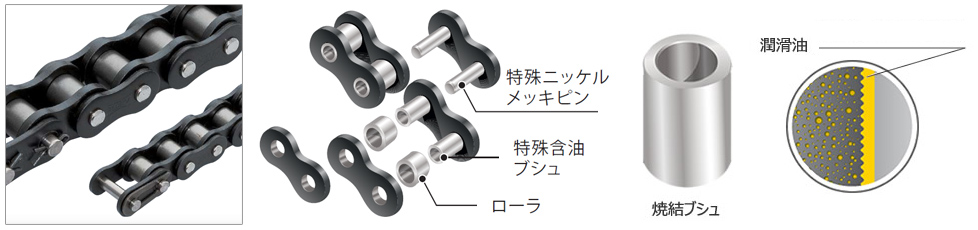 Lambda Chain, which uses special oil-impregnated bush, is compatible with most Small size conveyor chain. Since its launch in 1988, its performance has been highly praised.