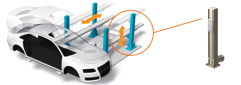 Electric Power Cylinder are used on the carts to secure the loaded vehicle to the work process. They reduce power consumption and can be installed in the limited space on the cart.