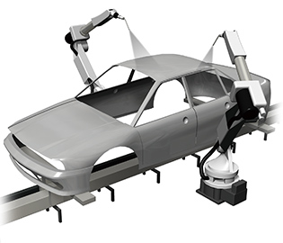 The TKRB type, which moves in three dimensions, is used for the robot arm that welds the body.