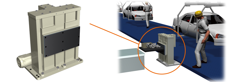 The low-floor, compactly designed Lift Master is used on lines where parts such as body frames and doors are welded and assembled, and in lifting devices for workpieces being loaded and unloaded. Please contact us for details on low-floor specifications.