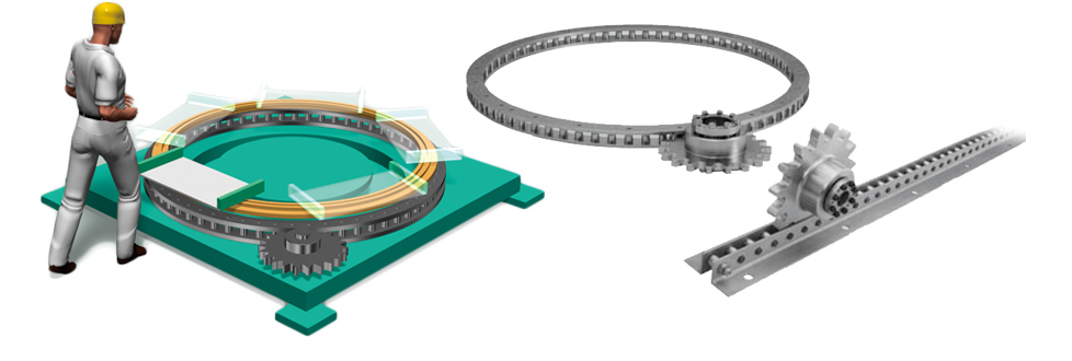 Pin gear drive unit is a new drive unit that replaces gear racks, etc. The combination of a pin-mechanical wheel rack and a special tooth gear greatly expands the design freedom of rotary and linear drive units.