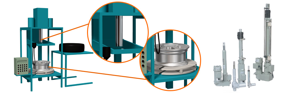 Tire mounter - Mounting tires onto wheels - Electric cylinder Power Cylinder-