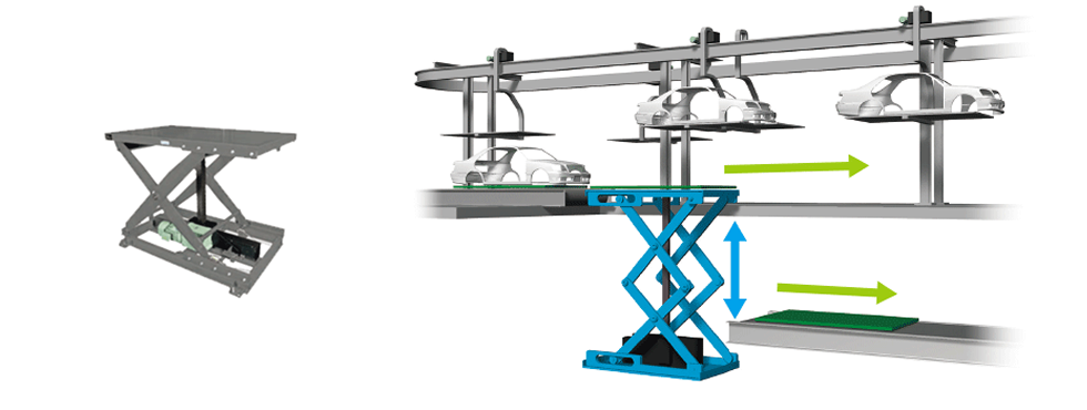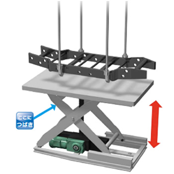 Zip Chain Actuator are used in the lifting mechanism for stacking transported items. In response to demand for extremely low-floor lifters, Long travel length lifting can be achieved without digging a pit.