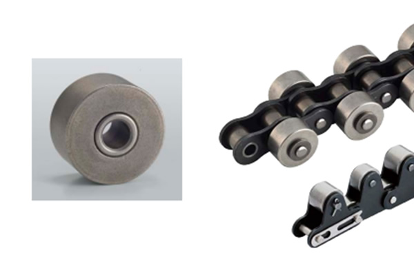 This roller has a special oil-impregnated bearing inserted into the steel roller, allowing it to be used Lube-free. This prevents the abnormal noise that occurs when a steel roller is used without oiling. Under in-house testing conditions, it has been reduced by approximately 10 dB compared to steel.