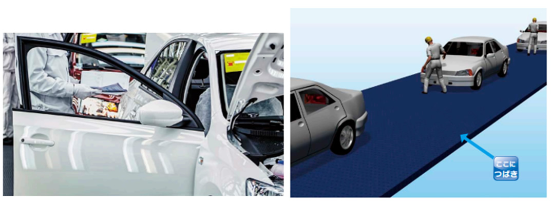 A wide variety of parts are used in automobiles, and this process involves processing and assembling these parts. We will introduce examples of application in the manufacturing of parts such as engines and doors.