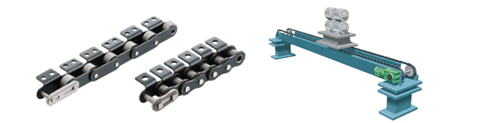 Chains with outboard roller are free-flow chains that have extended pins on Double pitch or RS chains, with freely rotating outboard roller attached to them.