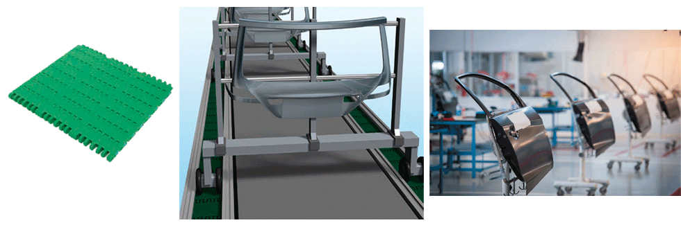 Plastic modular chain are used on conveyors that transport inspectors and vehicles together during the final inspection process.Plastic Plastic modular chain are easy to maintain because parts can be repaired.