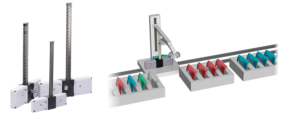 The compact Zip Chain Actuator is used in the lifting section of simple loader equipment. It allows the production of equipment with a simple structure, and allows parts to be picked up at high speed.