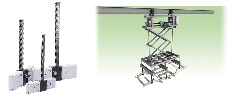 Zip Chain Actuator, which can be installed in a space-saving manner, are used in equipment such as gantry loaders that suspend parts. They are also capable of high-speed lifting and lowering, contributing to shorter cycle times.