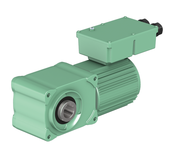 This gear motor incorporates power, temperature, and vibration sensors. It can monitor the operating status and load of equipment. Inverter drive is also supported. Data can be saved, making it useful for preventative maintenance.