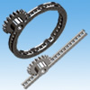 This gear rack with rollers has features that differ from conventional gears. Stainless steel and surface-treated versions are also available. It can accommodate arc shapes of the required angle.