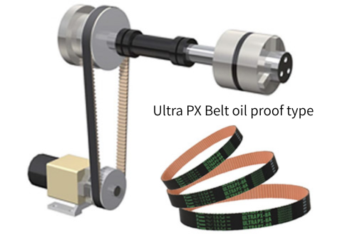 Tsubaki's Ultra PX Belt Synchronous Belts (oil-resistant specification) is a belt based on the high-performance Synchronous Belts" Ultra PX Belt HC Type" with added oil resistance, and has the same power transmission capacity as HC Type.