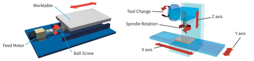 Feed shaft that provides a feeding motion to the cutting tool used to perform cutting operations on a workpiece.