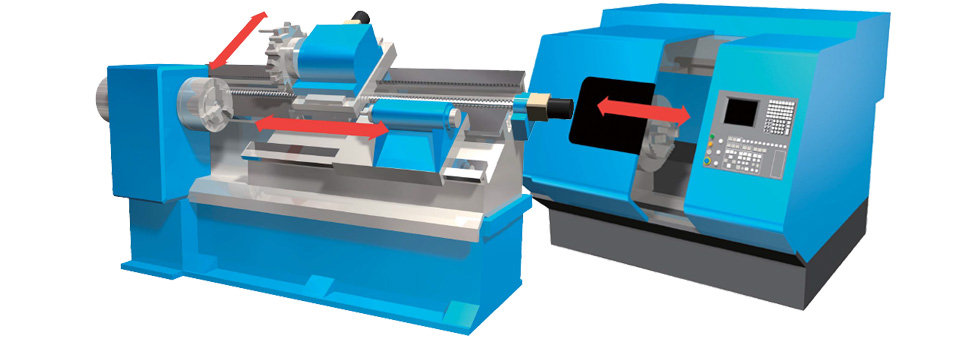 A CNC lathe (Computer Numerical (Controlled) Lathe) is a type of lathe that automatically processes a workpiece by inputting a machining program into a computer numerical control (CNC) device. It can create round-shaped parts by rotating the workpiece and applying pressure while moving the tool back and forth and left and right.