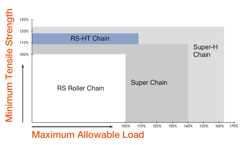 RS-HT chain is designed with outer link plates that are one size thicker than those of RS roller chain.