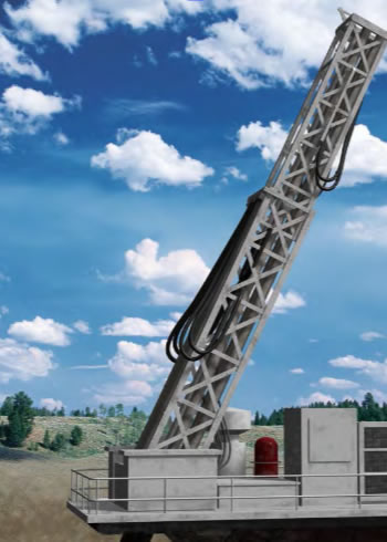 Drilling rigs bore holes from the surface down to deeper layers of the earth, and then, by loading and detonating explosives into the resulting boreholes, they remove topsoil and bedrock that would hinder mining. They are also used to collect core samples for resource exploration purposes.