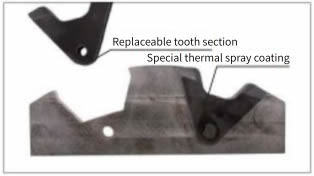 The sprocket teeth are replaceable, and a special thermal spray treatment is applied to tooth root.