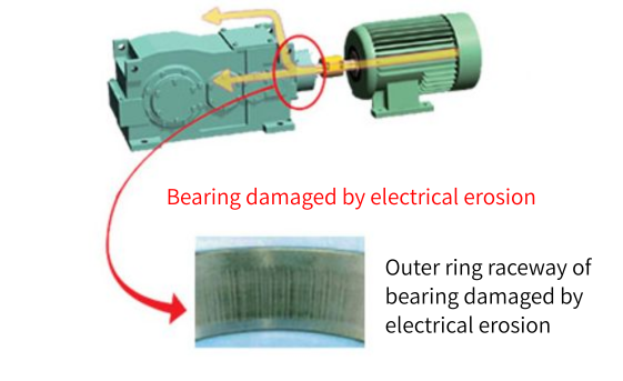 This prevents electrolytic corrosion (bearing damage) in the gearbox and other equipment caused by leakage current from the motor.