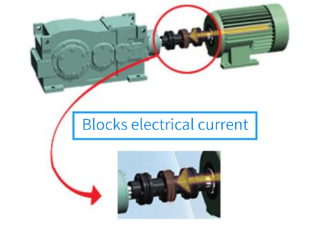 The electrical insulation specification blocks the current from the motor, preventing electrolytic corrosion on the machine side.