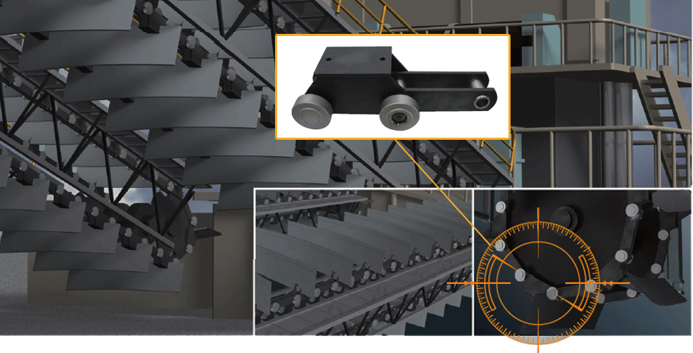 Reclaimer chains reach the end of their lifespan when wear-resistant inclusions enter the space between the bushings and rollers, or inside outboard roller, causing poor roller rotation and wear between the bushings and rollers.