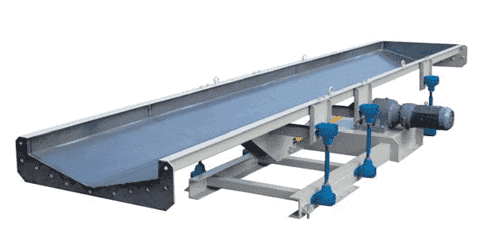 This machine is used to dispense bulk materials such as ore from a storage area. It dispenses the extracted material to the next process. This type uses a scraper attached to a chain to dispense the material.