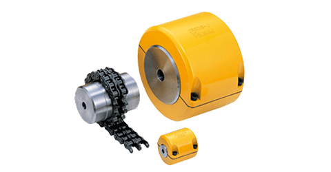 This flexible coupling consists of two rows of roller chains, specially manufactured for coupling, wrapped around two sprockets.