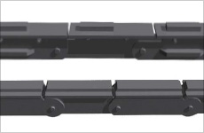 - Reduced chain running resistance (1/3 of general-purpose conveyor chains)