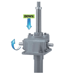 If A and B are right-hand threads, the screws will advance in the opposite direction [DOWN] to C and D.