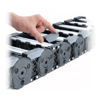 Cable Carrier (CABLEVEYOR) Plastic Series can handle travel length of up to 120m, making it suitable for use in overhead traveling cranes with long travel distance.