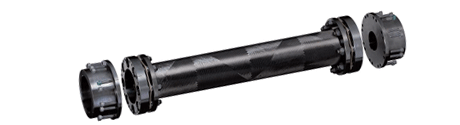 The spacer pipe section utilizes CFRP (carbon fiber reinforced plastic), achieving both corrosion resistance and significant weight reduction.