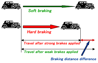The time it takes to stop with light braking and heavy braking