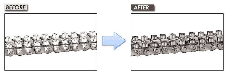 The process of tightening bolts and nuts one by one onto attachments, which was previously done on-site, has been eliminated.