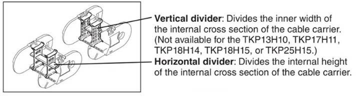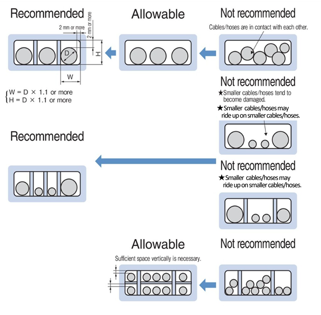 Dividers are important parts for protecting cables and hoses. Please use dividers whenever possible and insert cables and hoses separately.