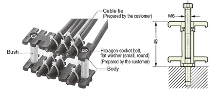 Tsubaki cable and Block Clamps allow you to clamp cables and hoses easily and securely, preventing damage to the cables and hoses.
