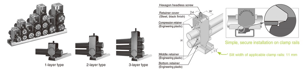 Please select the most suitable cable/ Block Clamps according to the outer diameter of the cable/hose, wiring, and placement.