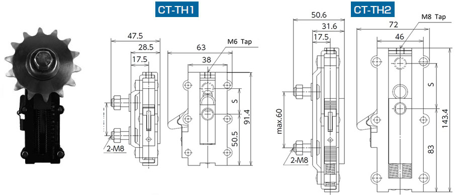 • We offer a lineup of four types of chain tensioners to eliminate chain slack: TH, TCS, ETS, and TA.