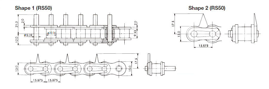 With mountain-shaped attachment RE This chain is suitable for transporting various rod-shaped items.