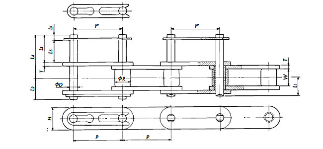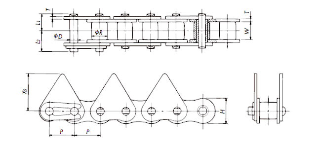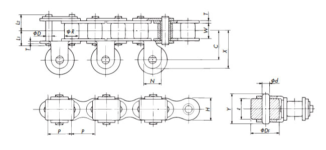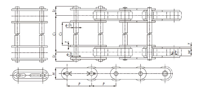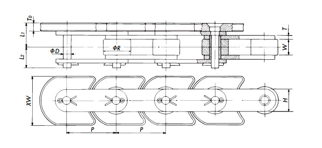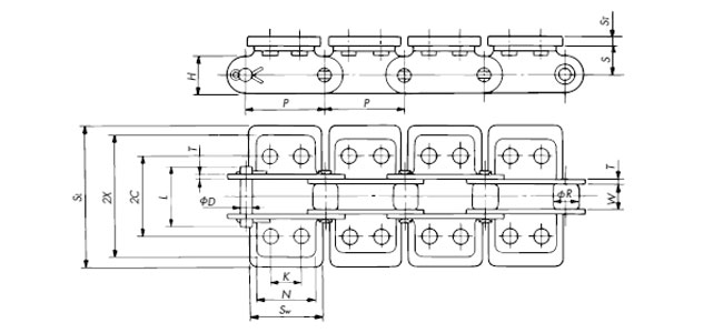 DL Based on Double pitch, this chain has an H1 dimension that is larger than the top surface of the rollers.Even with R rollers, conveyed items can be placed directly on it.