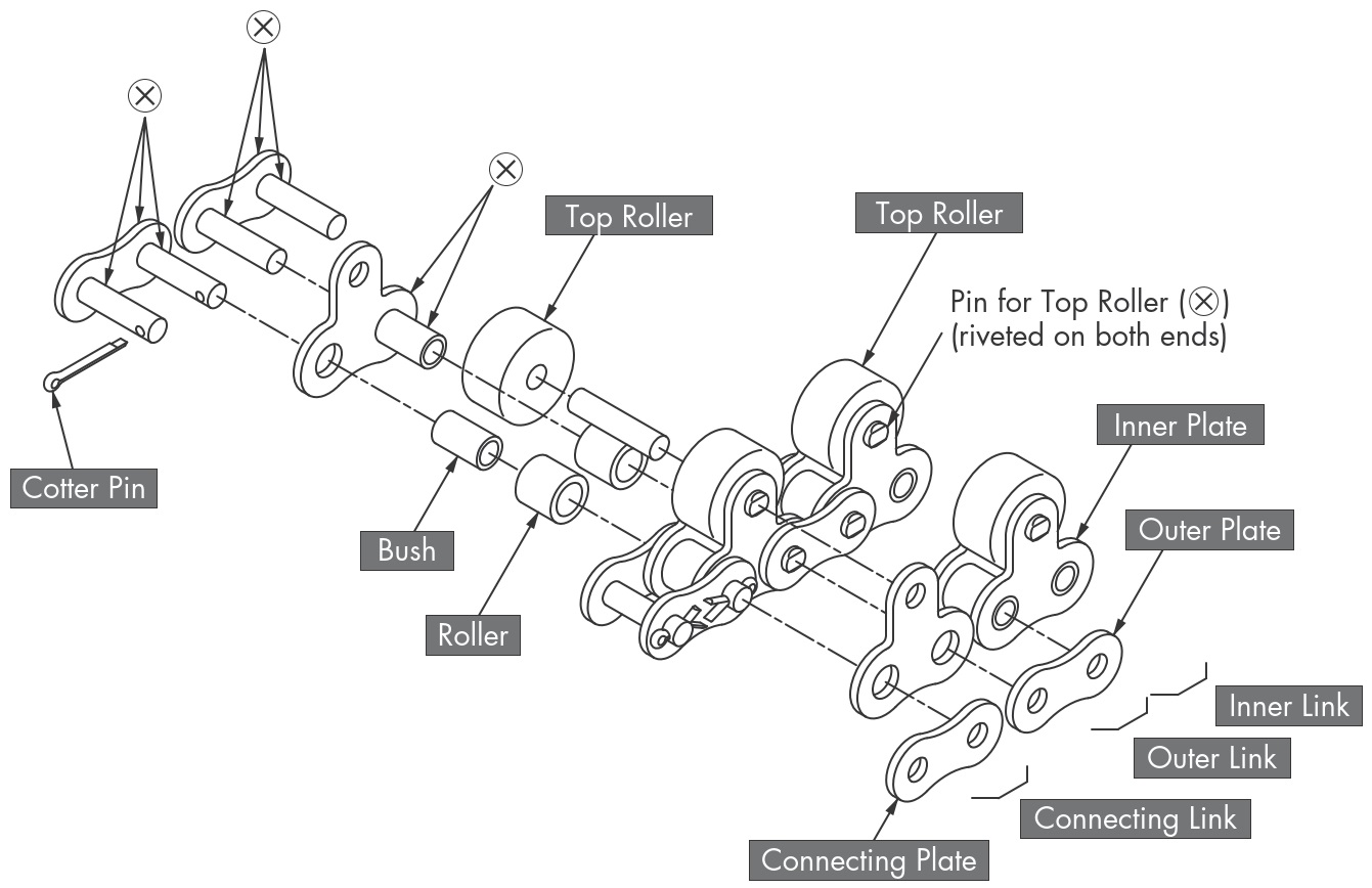 • - All parts of the chain body, including the rollers, are heat-treated and hardened steel.