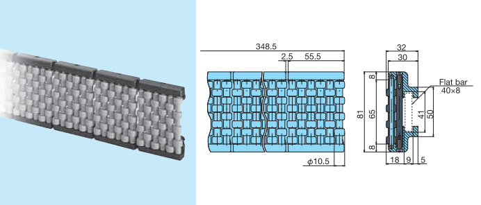 Reduces scratches on transported items on curved sections.