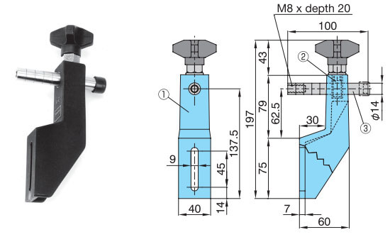 The fixed side is a female thread type. Please use in conjunction with guide channel clamp and adjustable bracket.